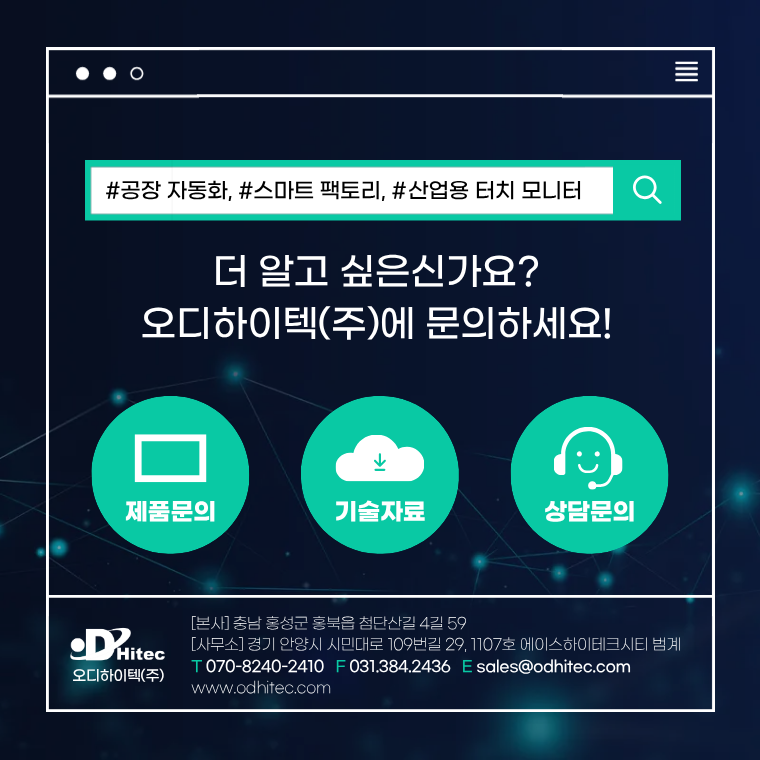 목록 PREV [뉴스레터 vol.11] 전기신문, 오디하이텍, 독자 기술로 전기차 충전기 ‘고질병’ 완전 정복 NEXT [OD Report Vol.02] Touch 오동작 방지 기술